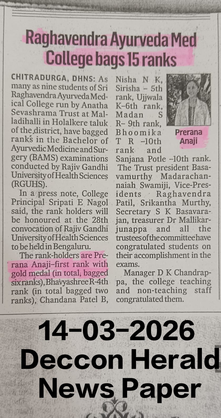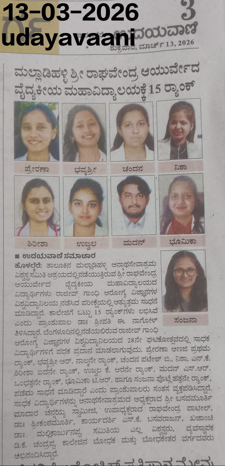RAGHAVENDRA AYURVEDA MEDICAL COLLEGE & HOSPITAL